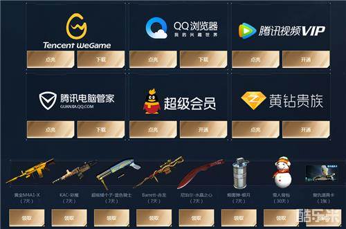 活动期间,用户每点亮一个特权图标,即可领取1件装备,每件装备最多领取1次。
