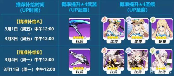 2)每十回精准补给内必出一件★4武器或★4圣痕。