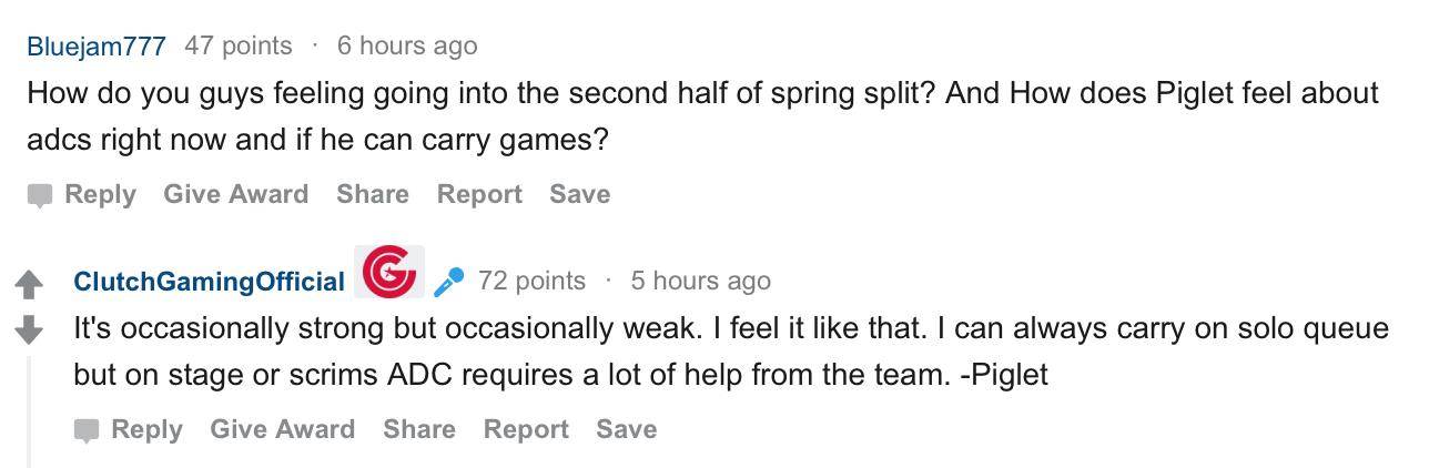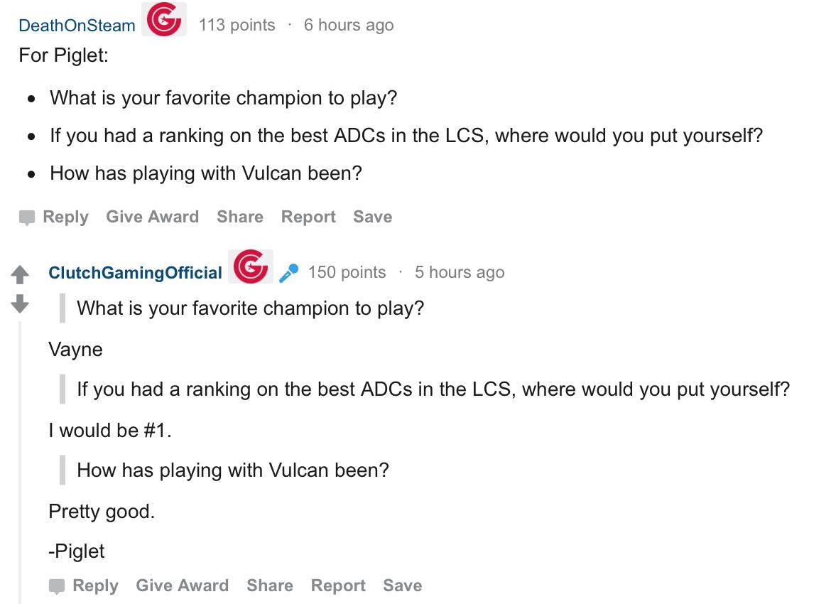 目前效力于北美Clutch Gaming战队的Piglet今日做客reddit AMA: