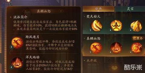 游侠中最常用的技能组是真麟血怒,攒气速度最快,可以为攻击最高的妖灵增加攻击,虽然经常给到阿织就是了。