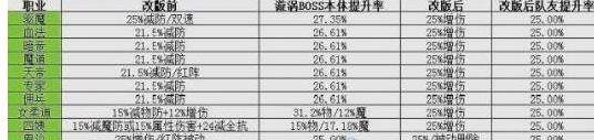 此番改动后,职业的减防机制全部都删除了,变成了增伤,原来提升超过25%的也变成了25,乃至是有些职业从25C变成了纯C,改动之后,原来的25C种,只有弹药魔灵和女漫游变成纯C,而巫女和召唤原来就是20C,所以没有变动。其他的职业如下面的表格,团长在开团的时候可别选错了职业,至少一个队伍里面放2个25C。