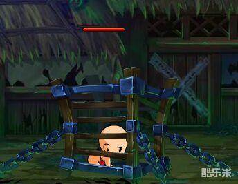 手拿一杆大盗,依旧是一只鱼精,那么进入正题。进入副本,会看到小童被锁在笼子里