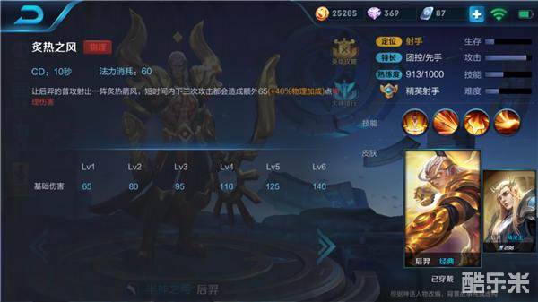 王者荣耀骄阳似火站撸敌手,后羿技能详解