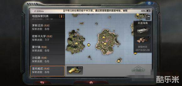 这个岛非常小,上去了很快就能发现探索点宝箱,打开后可以获得货币和木头奖励,大概位置可以看下面的探索点标注。