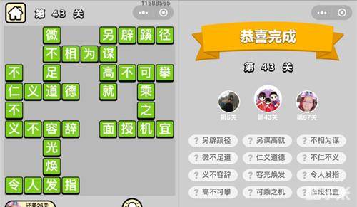 通过《成语升官记》第43关就可以晋升为秀才啦,又要升官是不是比较开心呢,下面就让小编为大家分享一下《成语升官记》童生第43关答案,帮助大家顺利升官!