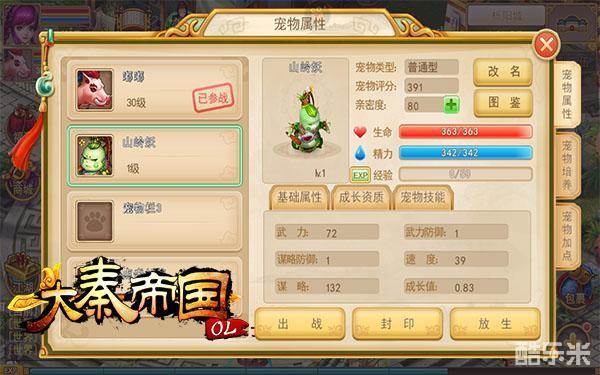 首先,打开宠物界面后,选择你要出售的宠物。首先要确保宠物是空闲状态,如果是出战状态的话是进行不了下一步的,然后再点击“封印”,即可把他装进箱子里了。最后呢,就可以摆摊出售啦!这个价钱嘛,就要看宠物的种类和资质了,等级不重要,升级快得很。最重要的就是资质和品质还有技能。