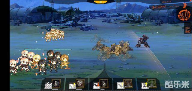 问题所在:机枪哥应该是会在第四秒钟的时候和SMG接战,这时候会有一个问题,如果SMG及时撤退会导致敌人前排盾兵过多,且紫菜头未死,HG没开出技能,后排损伤。