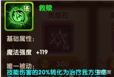 救赎加法强,被动伤害20%治疗我方血量最低的英雄,单体回血的效果会弱一些,加伤害
