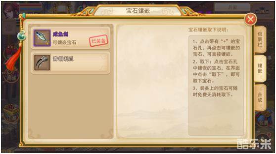 4、已镶嵌的宝石可取下,取下后宝石存放道具栏,不会消失;