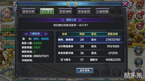 在我的家族页面里,族长可以添加家族成员,驱逐成员,解散家族修改公告等操作。