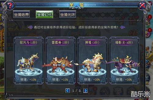 《魔神英雄传》攻略之强力坐骑:坐骑是人物等级达到42级才会有的一个给力的伙伴,坐骑的外观,光环,属性都有不错的性比价,让你一秒变大神!