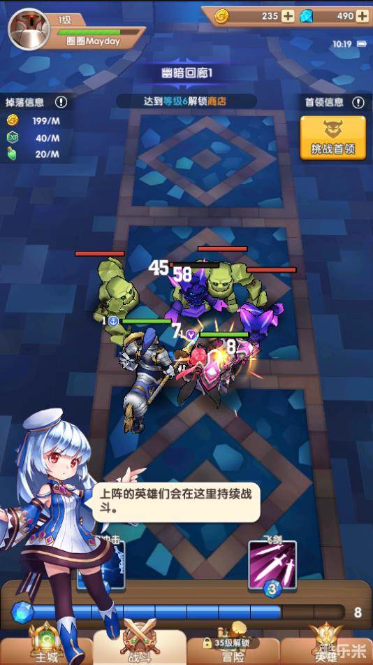 So,前期的玩法主要就是推图,并利用资源来升级手上会用的到的英雄(当材料或是升星对象)。一直到推不动图了,就需要挂机,利用挂机的产出的资源来继续增加我们的阵容的战斗力。