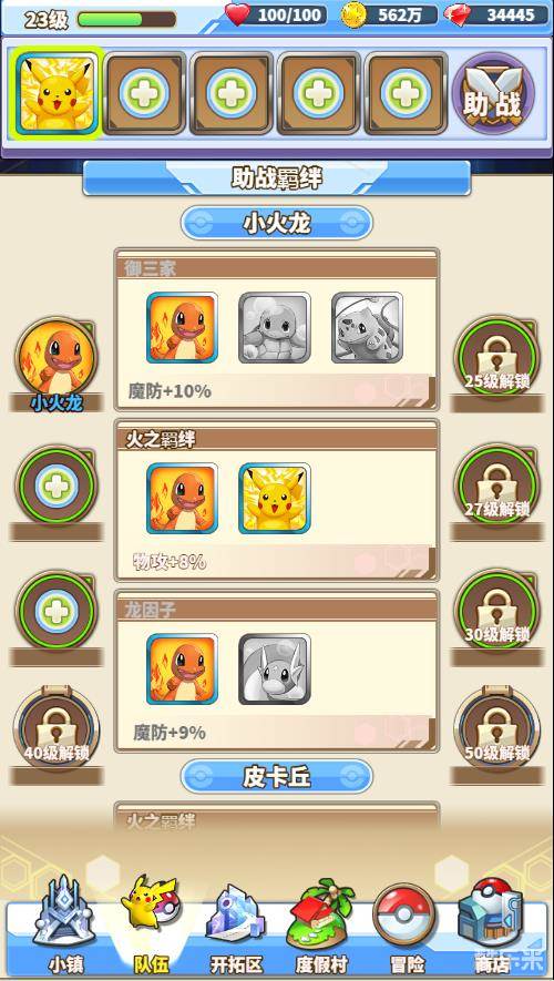 当玩家升到16级后会解锁助战功能,点击队伍系统找到在右上方的“助战”功能按钮进入助战系统,接着就玩家可以通过在助战系统中上阵其他精灵来和主队伍的精灵组成羁绊,当主要队伍的精灵激活羁绊后就会大幅度的提升该精灵的属性,并提升编队的整体实力。