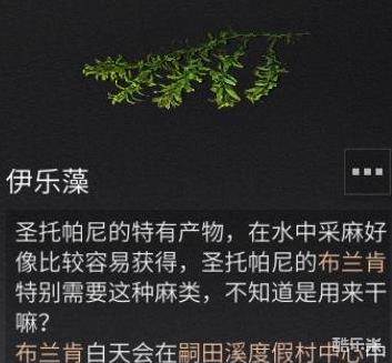 明日之后海岛新地图中玩家们在收集材料时,时常会收集到一些特殊材料,那么这些特殊材料有什么用呢?下面我们就来看看特殊材料伊乐藻的作用吧。