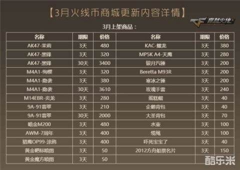 此次火线币商城还将上架包括AK47-茉莉(3天)、M4A1-绚樱(3天)、M14EBR-炎龙(3天)、AWM-7周年(3天)、大圣背包(3天)在内的一系列超值特惠商品道具。同时,新版本“钟楼爆破”更新后也将迎来部分商品道具下架,钟意AK47-苍龙(3天)、M4A1-XS-翔龙(3天)、AK-12-A(30天)、FR-F2老兵(30天)、BUTY粉红背包(3天)、翔龙喷图(3天)等道具的CFer,需抓紧时间在火线币商城购买体验。