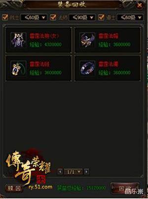 备回收垃圾也能变金币!打怪拾取的垃圾装备,淘汰的无用装备,PK爆出的普通装备,卖给商店价格太低,随地丢弃既不环保也不利于可持续发展,传奇荣耀为玩家贴心准备了特派物品回收员,无论是60级有以下的三职业装备,还是80级的高端装备,都可以在物品回收员处回收,玩家每回收一件装备都能得到经验、金币。