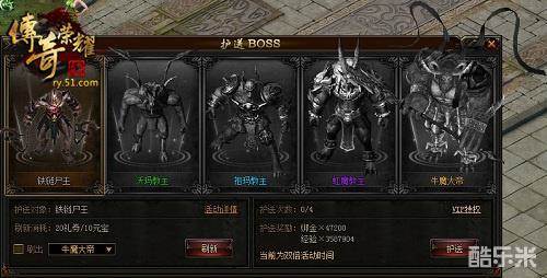 进入51《传奇荣耀》后,在每天的10:30-11:00、16:00-16:30、21:30-22:00这三个时段内完成此任务即可获得双倍奖励,因此大家需要注意时间的选择。护送的BOSS共分为五个品质,分别是铁链尸王、沃玛教主、祖玛教主、虹魔教主、牛魔大帝。