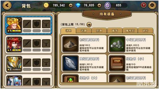 背包扩充:初始背包容量为50,战队每升1级容量增加1个,也可通过钻石扩充背包上限