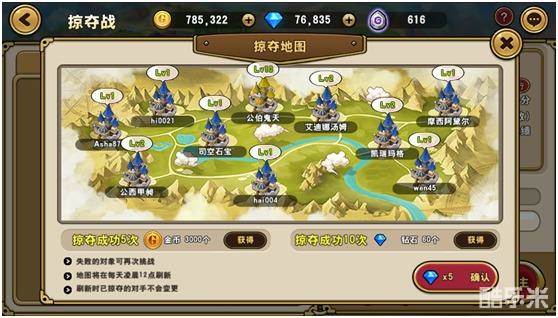 地图可以使用少量钻石进行刷新,但已经掠夺成功的玩家是无法刷新的