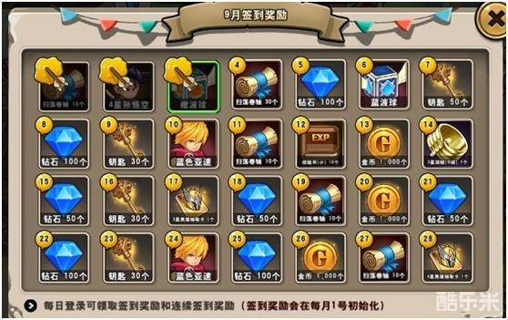 每月共可以签到28次,如果每月未完成28次,未完成的奖励无法不签