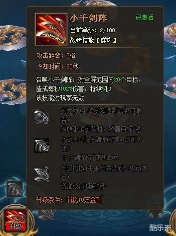 显示的是升级后的技能效果,以及升级需求(消耗金币和成功率)