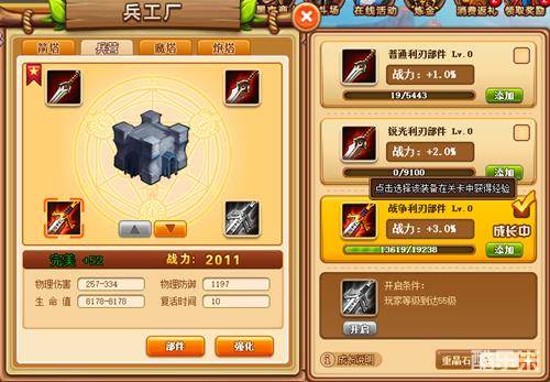4、每种防御塔只能选择1个部件进行培养,只有勾选培养的部才能够获得经验值哦,大家要注意了。