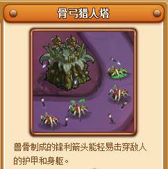 箭塔是弓箭手职业擅长的防御塔。攻速快,射程远,可对空可对地,是箭塔的特点,升级到后期还有毒液和破甲等技能哦。箭塔升级路线:一级箭塔→二级箭塔→三级箭塔→丛林猎人塔/骨弓猎人塔