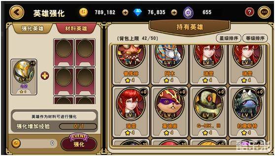 英雄强化:通过吞噬其他英雄,可以强化自身,吞噬的英雄英雄越高,强化经验越高
