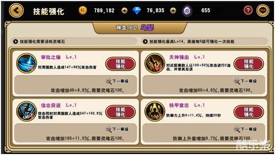 英雄技能强化:通过消耗灵魂石提升技能威力