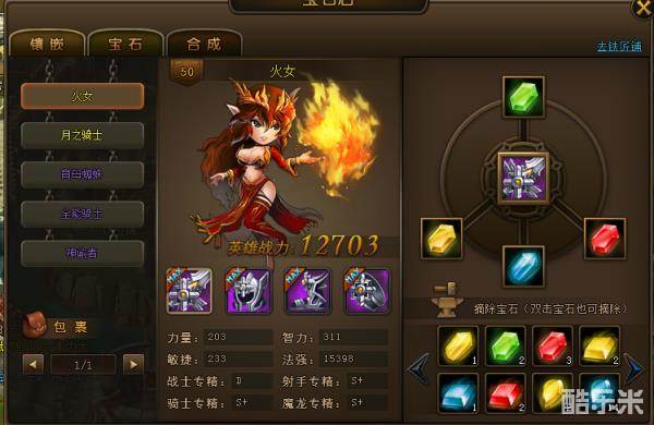 (5)关于宝石;主要先合成英雄的主属性宝石,如果一个英雄发动力是智力,建议先把这个英雄上最高级的蓝宝石,建议宝石搭配在前期为主6副5,像这样然后慢慢的这样合,