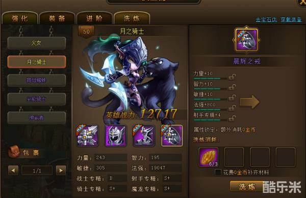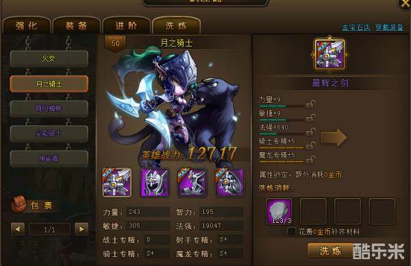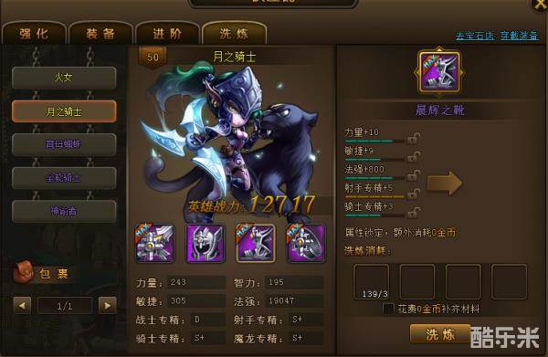 (六)关于洗练:关于洗练其实有多钟办法,下面我介绍战力最结实的这种,那以月骑为对象,火女是敏捷将,所以在三围中我们只用洗敏捷,除去一个敏捷和加力量(其他英雄洗加技能威力的三围属性 看下图