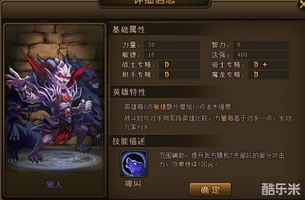 首先我来重点推荐狼人。狼人作为目前唯一一个加强士兵攻击的技能,不得不说非常之好用。战龙兵团里因为狼人是神秘英雄,很多人可能没有招到。但也有很多人招到了狼人却雪藏起来不用。。狼人的重要性被很多人忽略了。 附加狼人技能后士兵的伤害,不是哪个英雄的技能伤害可以比拟的