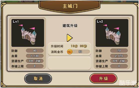 建筑属性增强:通过消耗金币进行建筑升级,同时获得建筑属性提升