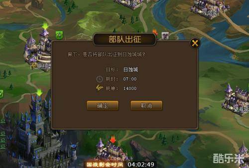 每次出征会消耗一定的粮食和时间,与你的部队所在地和出征地的距离有关,距离越远,出征时间越长,消耗粮食越多。你也可以使用金币加速部队,瞬间到达出征城池。