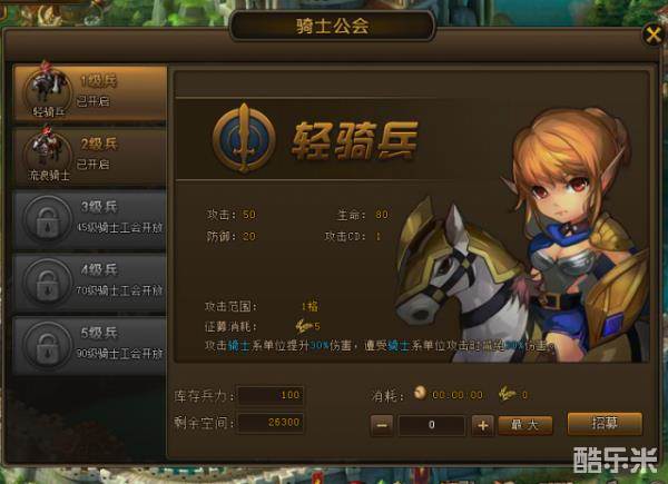 ※ 士兵在兵种建筑里招募,兵种建筑分为战士公会,射手公会,骑士公会,和魔龙巢穴。随主城等级提升逐渐开放。