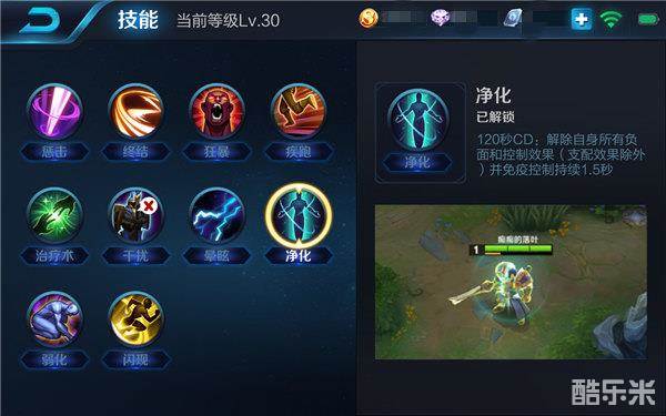 孙尚香的拥有超强的机动性,但仍然惧怕被敌人控制,因此召唤师技能推荐带净化,让她拥有解除敌人控制效果以及免疫控制的能力。