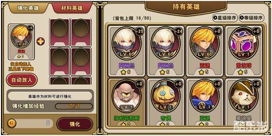 英雄可通过吞噬材料进行强化,强化后可提高英雄属性,强化上限与星级相关,星级越高,强化上限越高。材料可在普通关卡掉落。