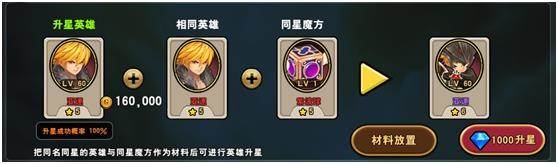 英雄升星能大幅提升战斗力,升星需要两个同样英雄和一个升星材料,英雄可通过碎片合成或关卡掉落获得。