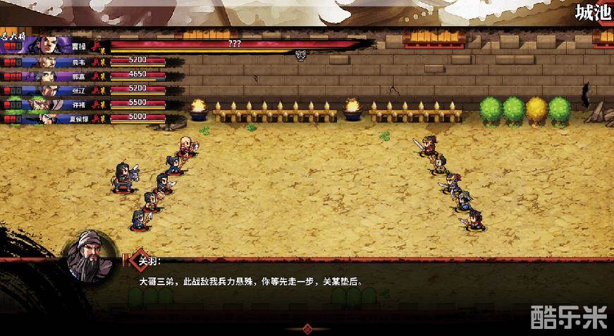 出徐州城后,曹操亲帅大军包围徐州,陈登战前授予重要道具「锦囊」。此战曹操难以匹敌,首回合强制先手「孟心」配合郭嘉的「龙水计」对我军全体造成伤害,毫无胜算。利用「锦囊」可暂时抵挡敌军普攻伤害,次回合可安全撤退。若在曹操大军的猛攻下坚持四回合后没有全灭,再行撤退,可获得造诣:「霸主降临」。利用「忌心计」限制典韦、许褚和夏侯惇的行动,若忌心计生效,配合「锦囊」的效果可勉强抵挡4回合,难度稍大。
