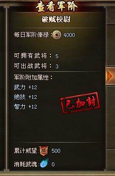 纵横九州威望达到500,上阵3人。