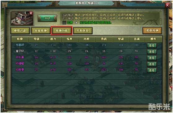 1、通过“招贤馆”中的“将领历练”,可以对麾下武将进行历练。或者通过将领属性页面进入历练系统。