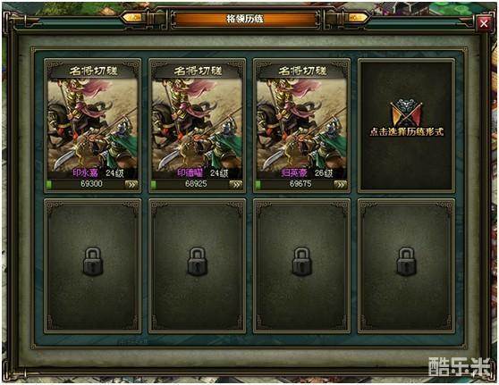 2、历练系统最多可以同时历练10位将领。系统免费给予两个已经激活的历练位置,剩余八个历练位置需要玩家手动激活。
