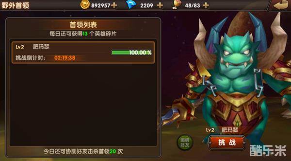 当击杀首领后,玩家可获得一个击杀的首领英雄的碎片和大量金币和少量技能经验。协助好友击杀的玩家也可获得大量金币和少量的技能经验。