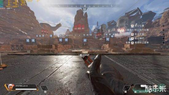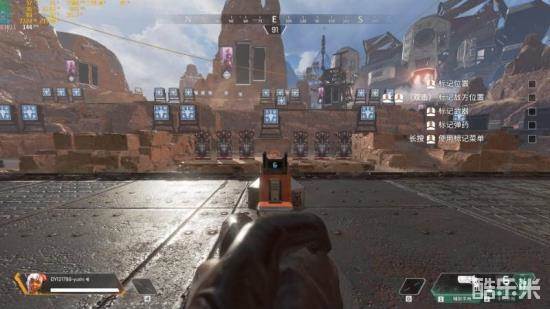 首先进入训练场,拿到辅助手枪之后像下图中这样瞄准。