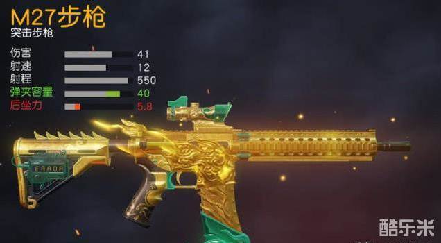 M27的初始属性与M4A1相同,各项属性都还算均匀,但是很多人喜欢M4的手感,都放弃了M27。其实M27的手感并不差,而且它还有8个配件槽,成长性要比M4高得多,满配情况下后坐力只有5点多,很多冲锋枪的后坐力都不止如此,更何况M27是一把步枪,这让它远距离都不怎么需要压枪。