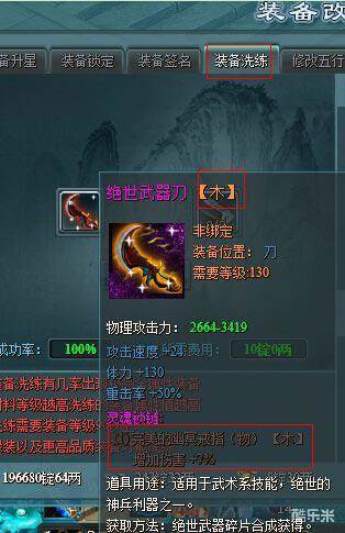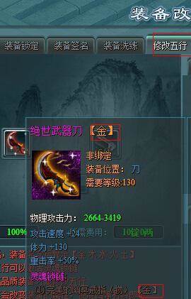 装备的五行分为:金 木 水 火 土。修改五行的时候,不需要高等材料,普通的材料就可以。
