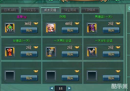 游戏中时装有唐装、彩云装、西装三种,可使用时间又分为一天和七天两种。其中一天的时装可以在商城中的成长变强栏目购买,而七天的时装只能在VIP商城中购买哦。