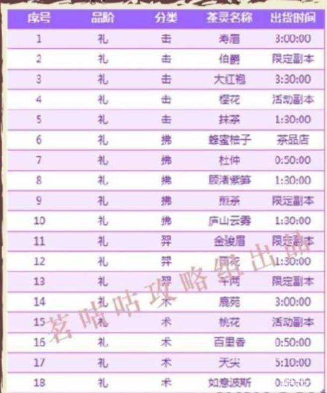 大家要注意哪些只在活动副本或者限定副本才能出货的茶灵,获得难度比较高,不要错过了。