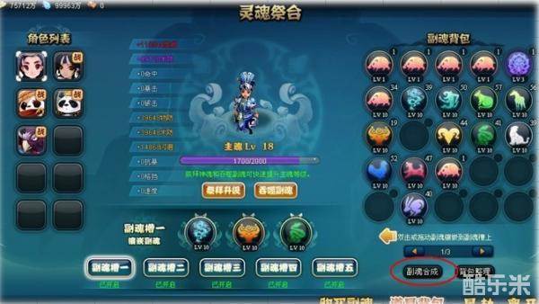 副魂升级 用户点击神魂界面上的"副魂合成"按钮打开副魂合成界面进行升级。