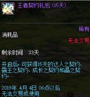 两款礼包中,除了可使用等级不同外,1~10级礼包含有15天王者契约、1个物品栏扩展券与1个金库扩展券,其他道具全部相同。